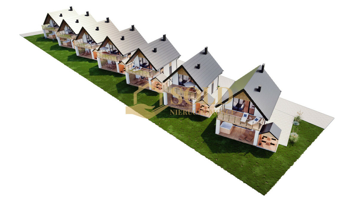 W planach 7 niezależnych budynków z sauną i miejscem parkingowym- możliwość budowy i sprzedaży poszczególnych budynków lub wynajmu.